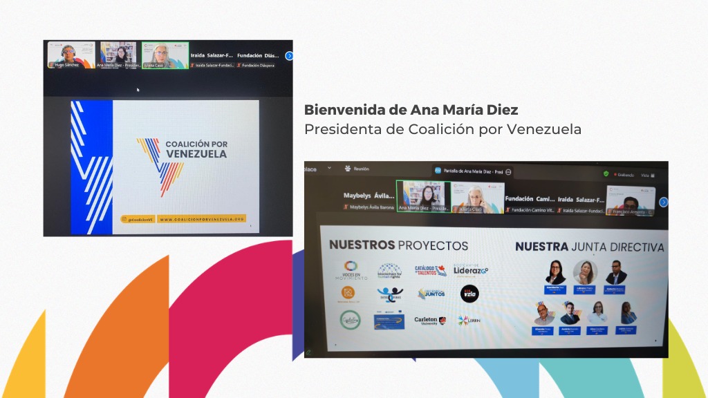 Durante el encuentro, la presidenta de Coalición por Venezuela, Ana María Diez, dio la bienvenida a los asistentes y presentó el recorrido institucional de la federación, que agrupa a más de 60 organizaciones en toda América, el Caribe y Europa.